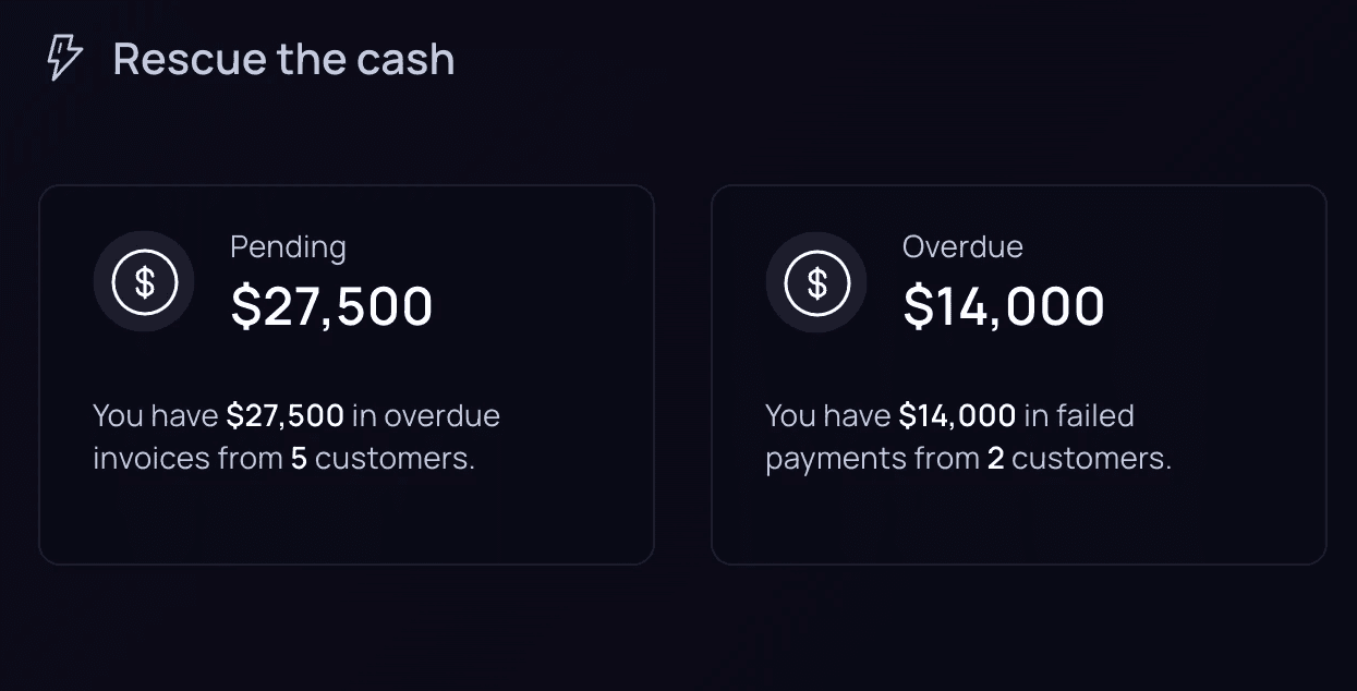Detect overdue and failed payments instantly, safeguarding your cash flow and maintaining healthy client relationships. SalesFlow alerts you to potential issues before they escalate, empowering you to take swift action and minimize disruptions. With SalesFlow, you can ensure seamless transactions and uninterrupted revenue, all while fostering trust and reliability with your customers.